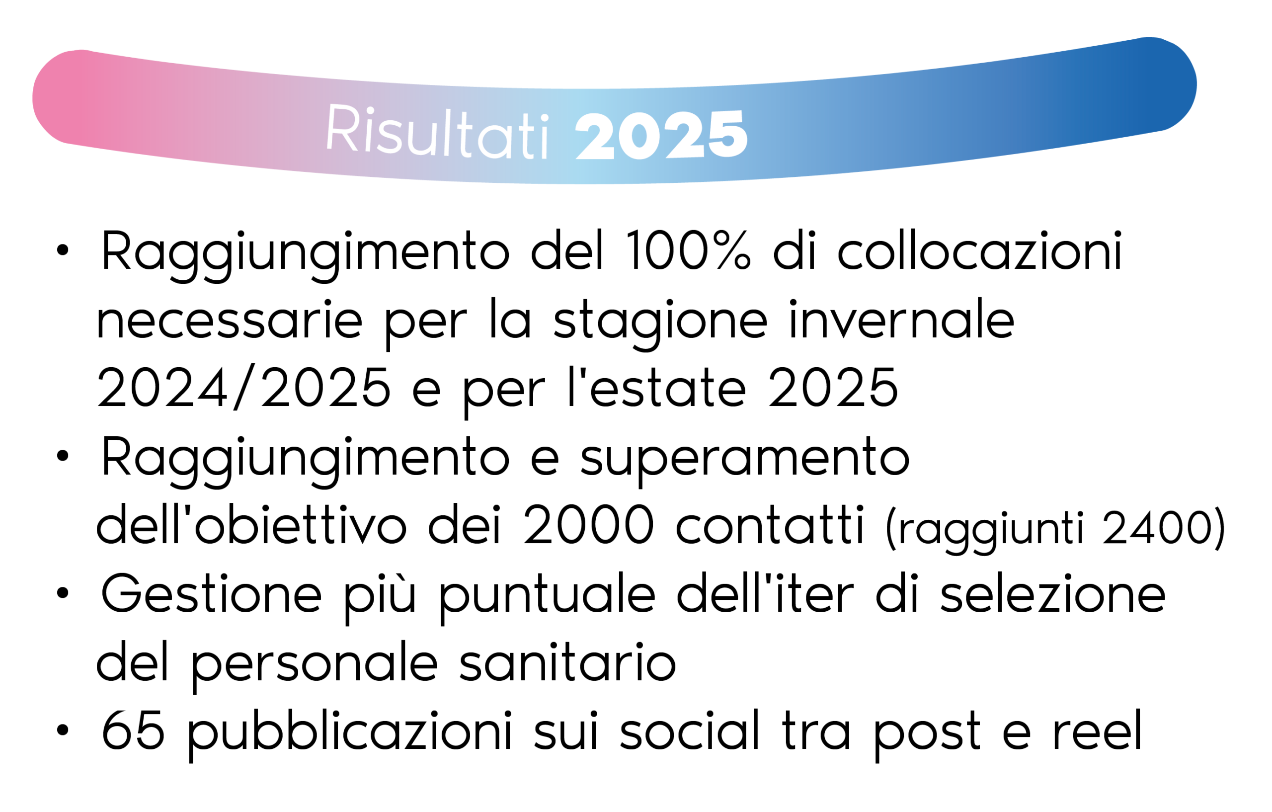 Replicare il 100% delle collocazioni nel corso della stagione estiva ed invernale in tutti i settori